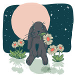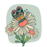 Plants, flowers, animals, skulls and magical elements often appear in her illustrations which are bold and colourful.