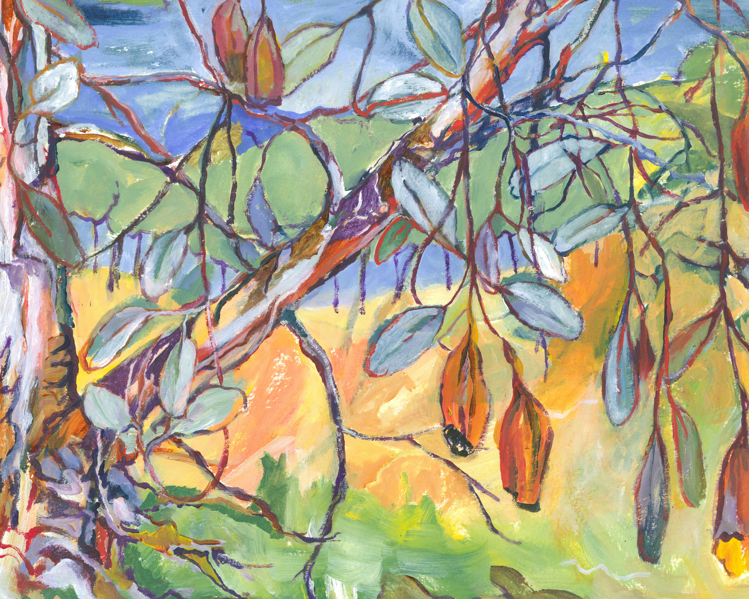 Semi abstract impression of Eucalyptus tree with seed cases