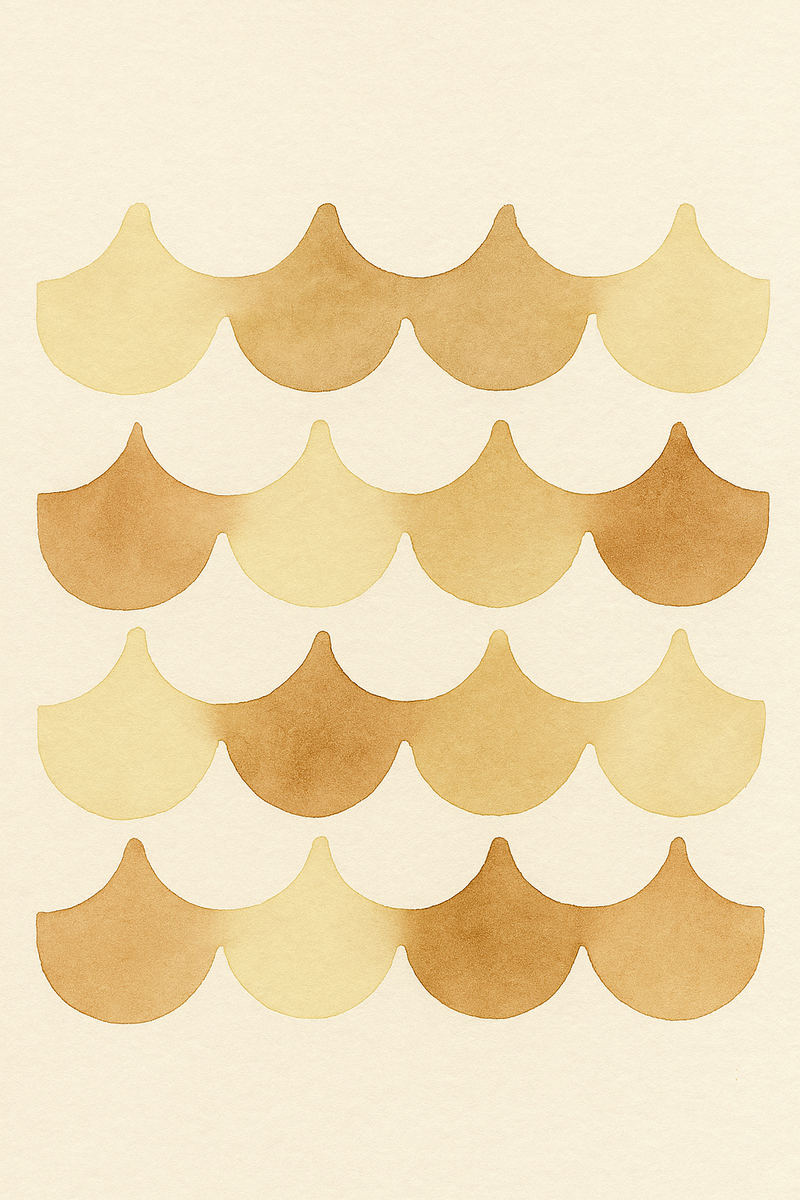 Coastal Clay Pattern evokes the tranquil rhythm of the Nordic shoreline, where pottery meets sea and sand. Soft, wave-like curves flow gently across the composition, painted in muted tones of butter yellow and nutmeg to mirror the warmth of hand-glazed coastal ceramics.