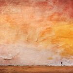 Fisherman Walking Home against a Painted Sunset Sky