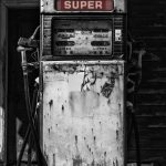 Old Rustic Petrol Pump in Black and White