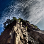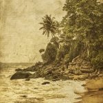 Rustic Shoreline of Rocky Beach with Palm Trees in Sri Lanka